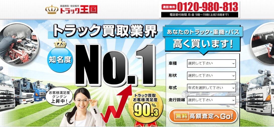 ・テレビCMも放送されておりトラック買取業者で知名度NO1、お客様満足度は90.3%